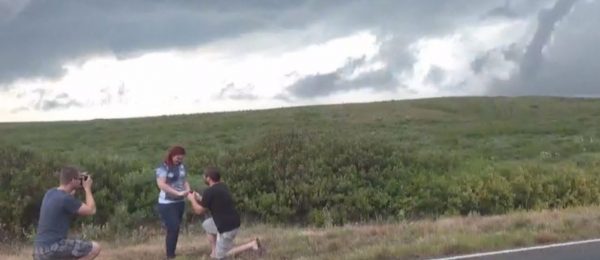 Tässä nähdään astetta kovempi kosinta – mies kosi tyttöystäväänsä tornadon edessä