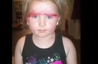 Moni pikkulapsi tykkää leikkiä äitinsä meikkipussilla ja sen sisällöllä. Erityisesti pikkuprinsessat usein pitävät äitinsä meikkien kokeilemisesta. Nyt eräs pikkuneiti on jäänyt verekseltään kiinni äitinsä meikkipussilla käymisestä.