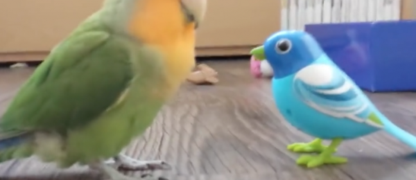Source: Curious parrot fascinated by mechanical bird by andytrappitt on Rumble